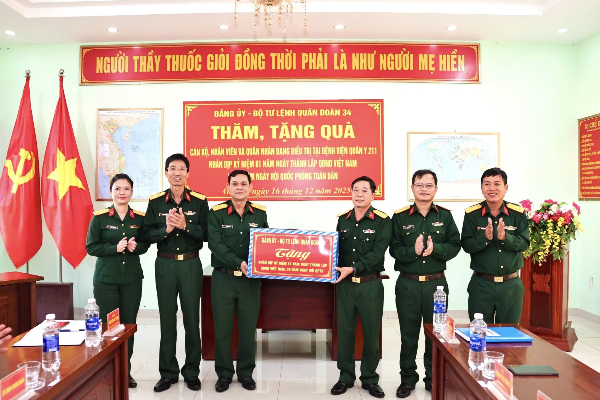 Sáng ngày 16/12/2025, trong không khí thiêng liêng hướng tới kỷ niệm 81 năm Ngày thành lập Quân đội nhân dân Việt Nam (22/12/1944- 22/12/2025) và 36 năm Ngày Hội Quốc phòng toàn dân( 22/12/1989 - 22/12/2025), Bệnh viện Quân y 211 vinh dự đón tiếp Thủ trưởng Bộ Tư lệnh Quân đoàn 34 đến thăm, tặng quà cán bộ, nhân viên y tế và các đồng chí quân nhân đang điều trị tại Bệnh viện.