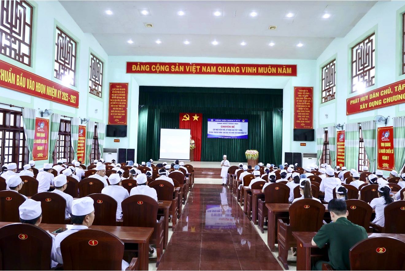 Tại buổi sinh hoạt, Đ𝐚̣𝐢 𝐭𝐚́ 𝐇𝐨𝐚̀𝐧𝐠 𝐓𝐢𝐞̂́𝐧 𝐃𝐮̃𝐧𝐠 - 𝐆𝐢𝐚́𝐦 đ𝐨̂́𝐜 𝐁ệ𝐧𝐡 𝐯𝐢ệ𝐧 𝐧𝐡𝐚̂́𝐧 𝐦𝐚̣𝐧𝐡: “𝐺𝑖𝑎𝑜 𝑡𝑖𝑒̂́𝑝 𝑦 𝑘ℎ𝑜𝑎 𝑙𝑎̀ 𝑐𝑎̂̀𝑢 𝑛𝑜̂́𝑖 𝑞𝑢𝑎𝑛 𝑡𝑟𝑜̣𝑛𝑔 𝑔𝑖𝑢̛̃𝑎 𝑡ℎ𝑎̂̀𝑦 𝑡ℎ𝑢𝑜̂́𝑐 𝑣𝑎̀ 𝑛𝑔ư𝑜̛̀𝑖 𝑏ệ𝑛ℎ. 𝑉𝑖ệ𝑐 𝑡𝑟𝑎𝑢 𝑑𝑜̂̀𝑖 𝑘ỹ 𝑛𝑎̆𝑛𝑔 𝑔𝑖𝑎𝑜 𝑡𝑖𝑒̂́𝑝, 𝑡ư 𝑣𝑎̂́𝑛, 𝑡𝑟𝑢𝑦𝑒̂̀𝑛 𝑡ℎ𝑜̂𝑛𝑔 𝑘ℎ𝑜̂𝑛𝑔 𝑐ℎ𝑖̉ 𝑔𝑖𝑢́𝑝 𝑛𝑎̂𝑛𝑔 𝑐𝑎𝑜 𝑐ℎ𝑎̂́𝑡 𝑙ư𝑜̛̣𝑛𝑔 𝑘ℎ𝑎́𝑚 𝑐ℎ𝑢̛̃𝑎 𝑏ệ𝑛ℎ 𝑚𝑎̀ 𝑐𝑜̀𝑛 𝑔𝑜́𝑝 𝑝ℎ𝑎̂̀𝑛 𝑥𝑎̂𝑦 𝑑𝑢̛̣𝑛𝑔 𝑛𝑖𝑒̂̀𝑚 𝑡𝑖𝑛, 𝑠𝑢̛̣ ℎ𝑎̀𝑖 𝑙𝑜̀𝑛𝑔 𝑐𝑢̉𝑎 𝑛𝑔ư𝑜̛̀𝑖 𝑑𝑎̂𝑛 𝑣𝑜̛́𝑖 ℎệ 𝑡ℎ𝑜̂́𝑛𝑔 𝑦 𝑡𝑒̂́ 𝑞𝑢𝑎̂𝑛 đ𝑜̣̂𝑖.”